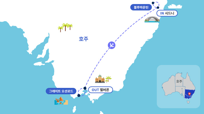 - 호주 내 국내선 1회 이동으로 차량 이동 최소화로 편안함 UP
